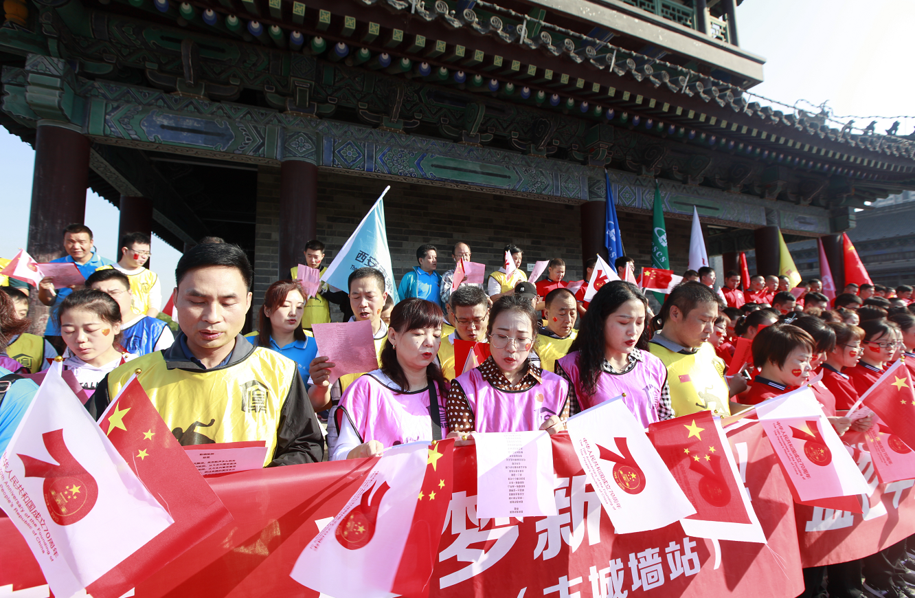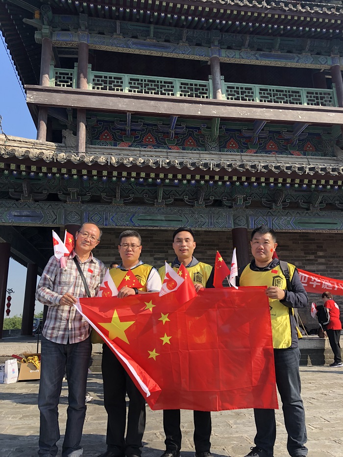 健步走活動是本次最后一項活動,線路是從長樂門出發(fā)至永寧門,再返回至長樂門。大家邁著堅定自信的步伐,走在古城墻上,欣賞著護(hù)城河、箭樓、女兒墻垛等一系列防御設(shè)施,前望不到頭,后望不到頭,看著下面如螞蟻般蠕動的人們,不禁感慨西安變化之大?;顒油局写蠹胰宄扇海呑哌吪恼?,引得其他游客也激動的加入此次活動。還有許多同事通過我們的采訪鏡頭表達(dá)了他們對中華人民共和國成立70周年的美好祝福。