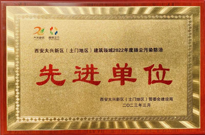 西安市住總建設(shè)集團有限公司黃金嘉境項目部被評為“大興新區(qū)(土門地區(qū))建筑領(lǐng)域2022年度揚塵污染防治先進單位” “大興新區(qū)(土門地區(qū))建筑領(lǐng)域2022年度農(nóng)民工工資保障先進單位”