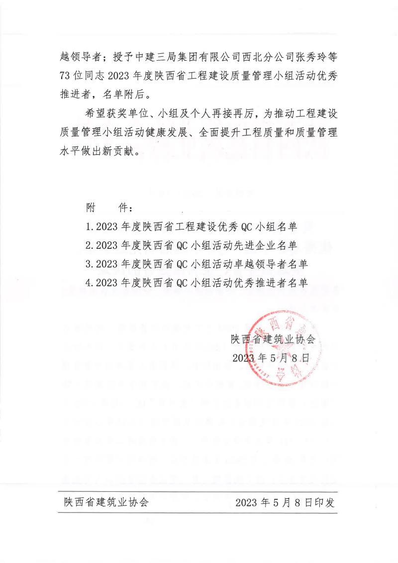 近期,在陜西省建筑業(yè)協(xié)會2023年QC成果評審中,港務(wù)中路項目QC小組《切割機擋火、降塵、水過濾系統(tǒng)的研制與應(yīng)用》榮獲二類成果獎。今后我們將繼續(xù)努力,再接再厲,爭取拿到更多成果獎項,為提升工程質(zhì)量貢獻(xiàn)一份住總力量。
